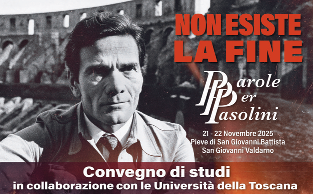 Il 21 e 22 novembre 2025, nella Pieve di San Giovanni Battista a San Giovanni Valdarno, si terrà il convegno Non esiste la fine. Parole per Pasolini, organizzato con scuole e università toscane. L’iniziativa, patrocinata anche dall’Università di Pisa, propone una riflessione su Pasolini a cinquant’anni dalla sua morte.