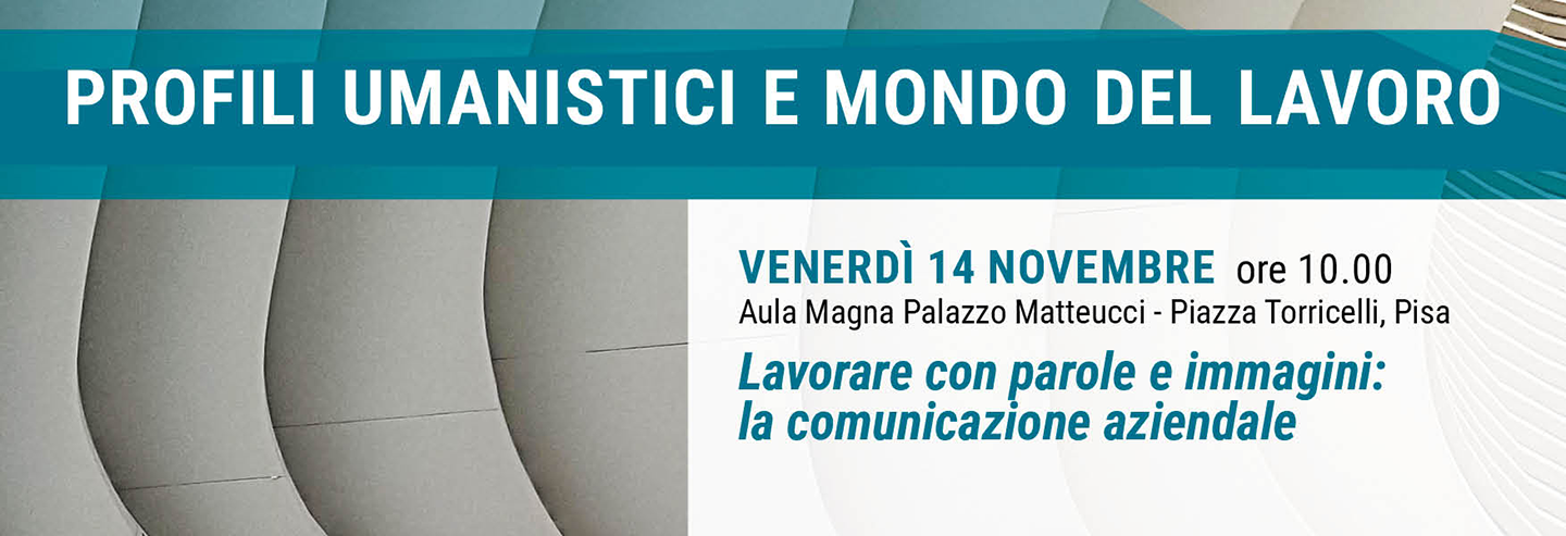Per il ciclo Profili umanistici e mondo del lavoro, venerdì 14 novembre 2025 alle ore 10:00 nell’Aula Magna di Palazzo Matteucci (piazza E. Torricelli, 2) si tiene l’evento Lavorare con parole e immagini: la comunicazione aziendale.