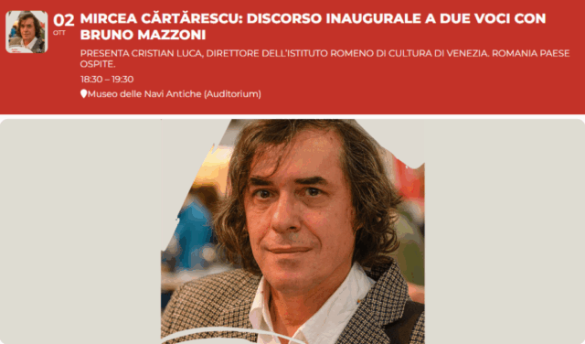 Modera Cristian Luca, direttore dell’Istituto Romeno di Cultura e Ricerca Umanistica di Venezia, l’istituzione che sostiene la partecipazione della letteratura romena al Festival.
